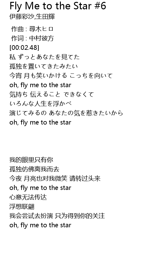 | [00:23.14] | 今宵 月も笑いかける こっちを向いて |