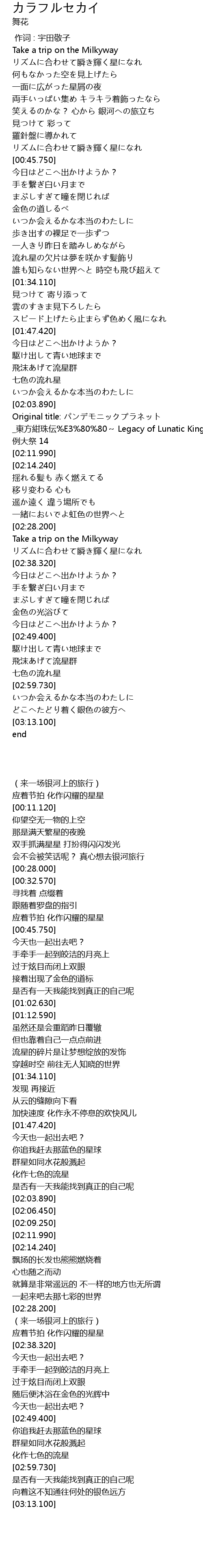 | [02:22.250] | 一緒においでよ虹色の世界へと |