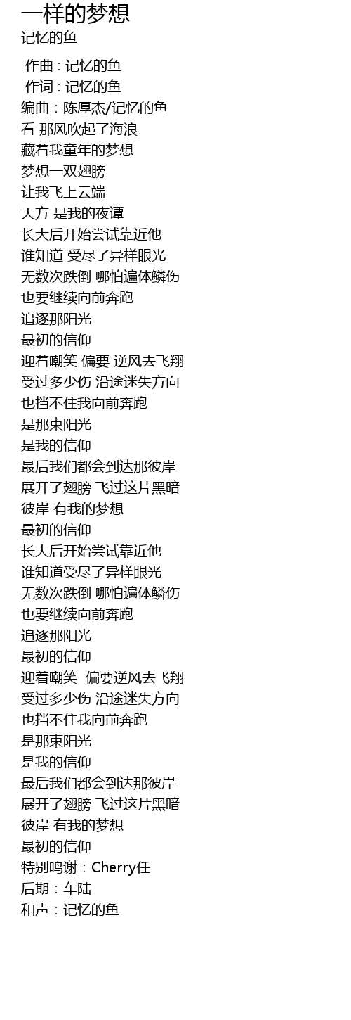 | [00:01.000] | 作词 : 记忆的鱼 |