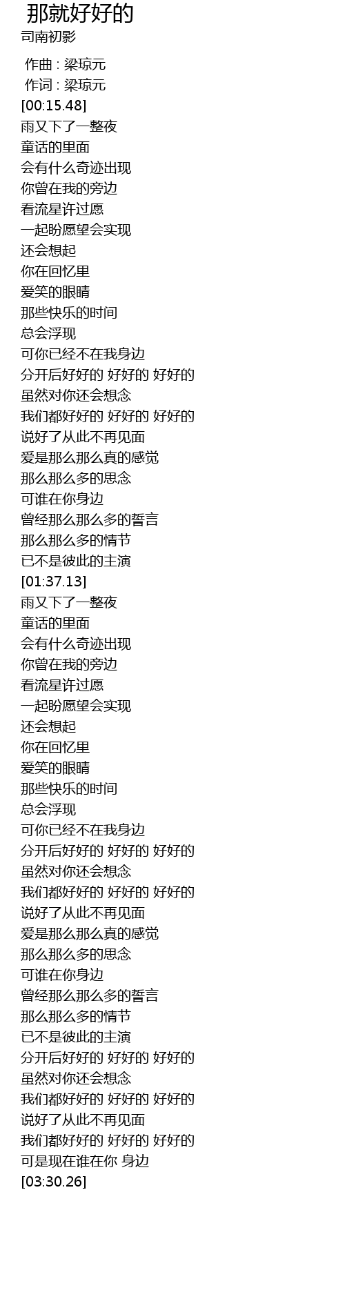 | [02:57.20] | 分开后好好的 好好的 好好的 |