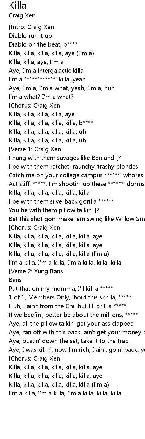 | [00:28.88] | Killa, killa, killa, killa, killa, b**** |