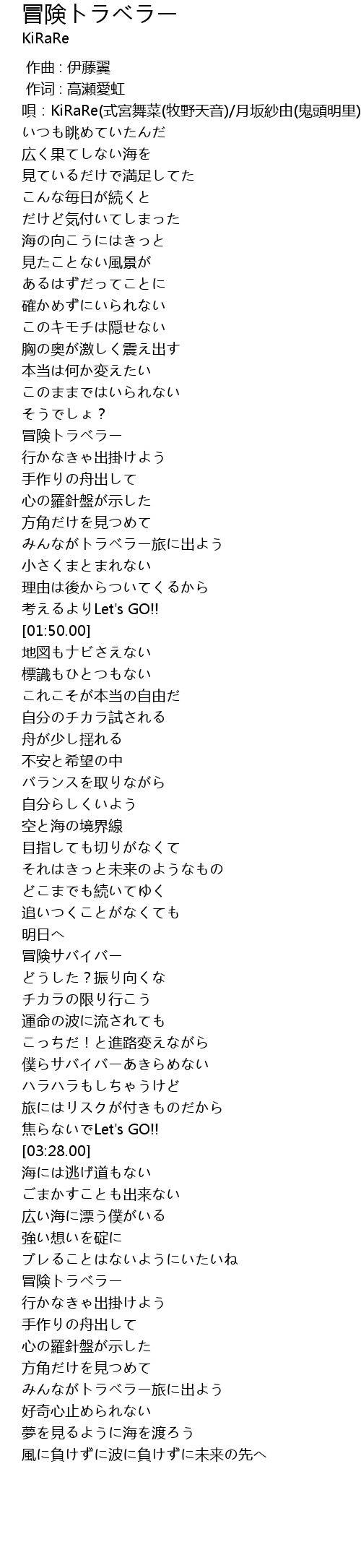 | [04:53.06] | みんながトラベラー旅に出よう |