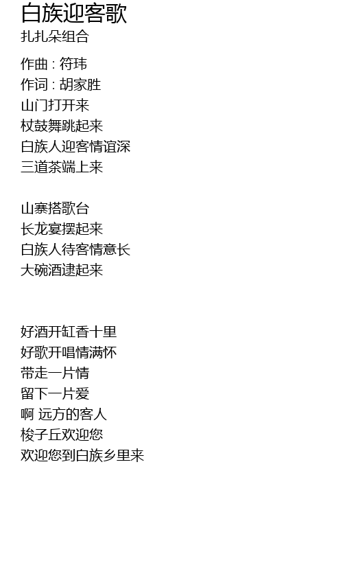 | huān yíng nín dào bái zú xiāng lǐ lái |