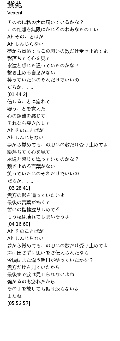| [04:06.52] | もう私は壊れてしまいそうよ |