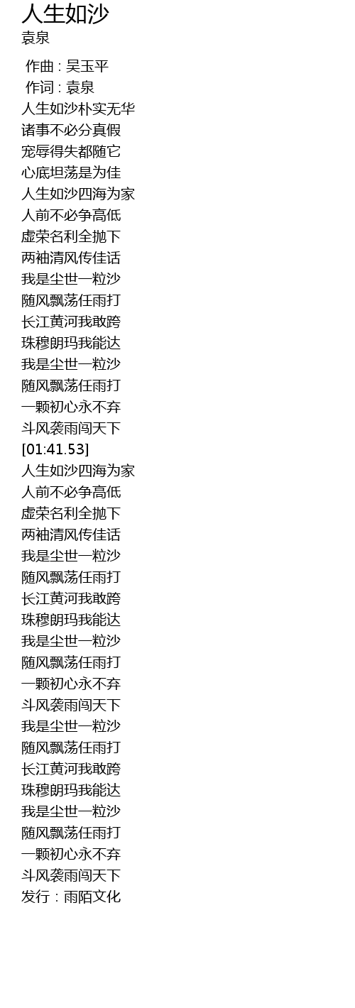 | [00:41.60] | rén shēng rú shā sì hǎi wéi jiā |