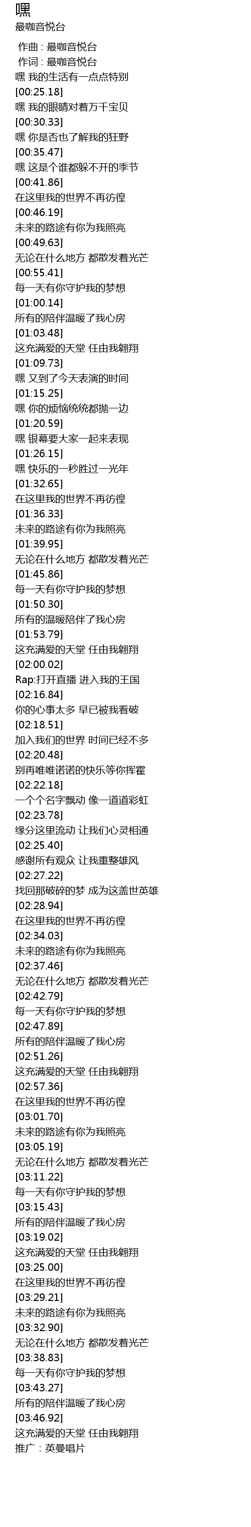 | [00:01.000] | 作词 : 最咖音悦台 |