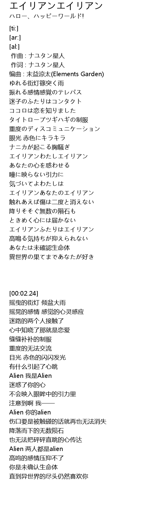 | [01:24.80] | エイリアンふたりはエイリアン |