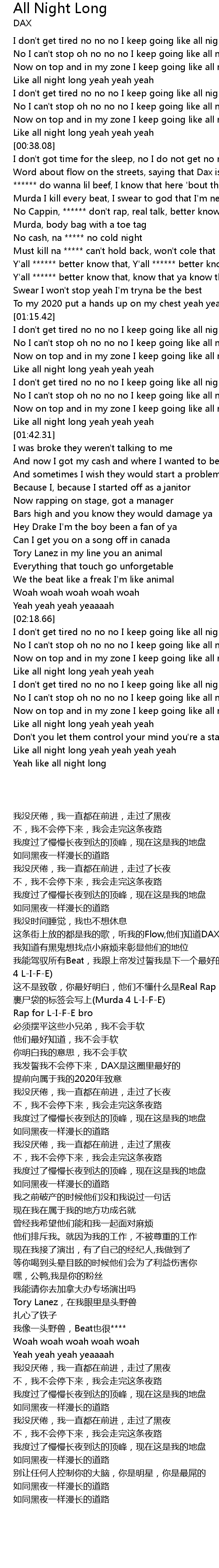 I don't get tired no no no I keep going like all night long |