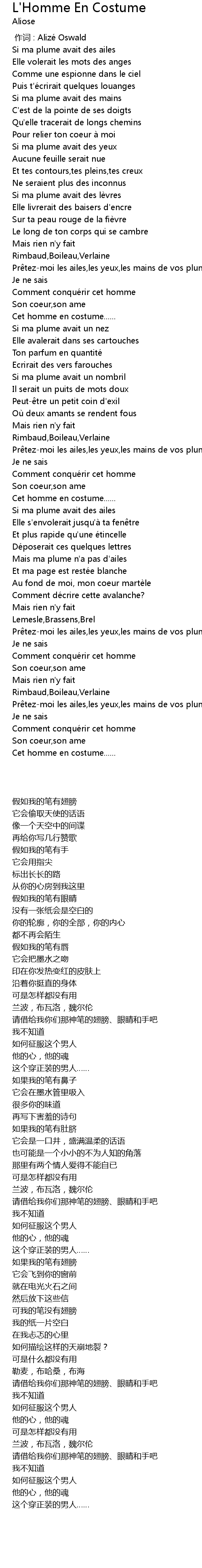 | [00:00.00] | zuò cí : Alizé Oswald |