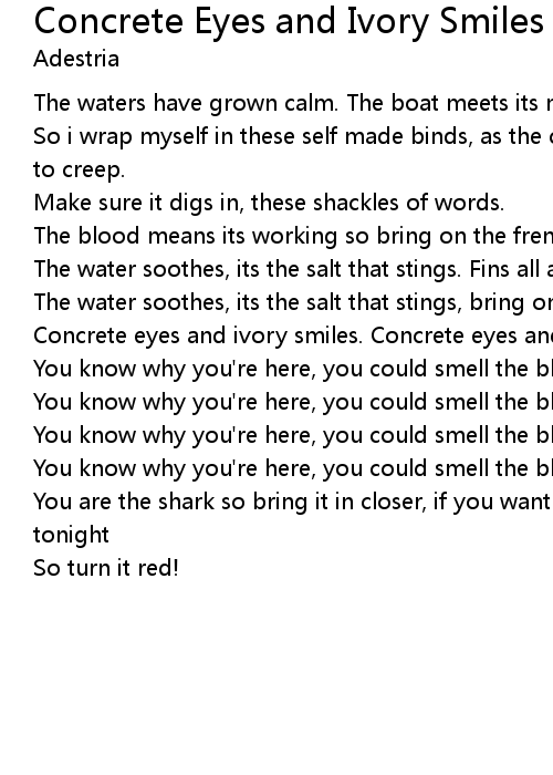 Concrete eyes and ivory smiles. Concrete eyes and ivory smiles.