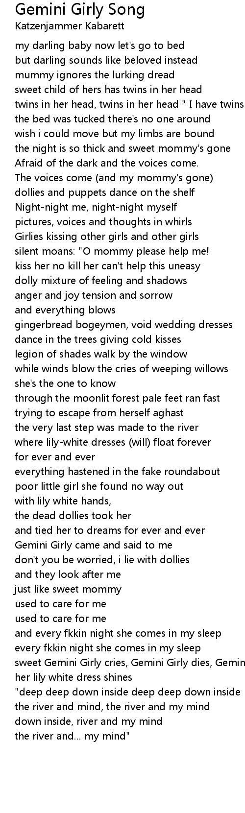 sweet Gemini Girly cries, Gemini Girly dies, Gemini Girly lies