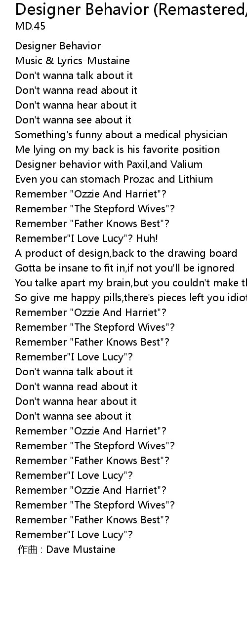 | Song | Designer Behavior (Remastered/24 Bit Mastering/2004) |