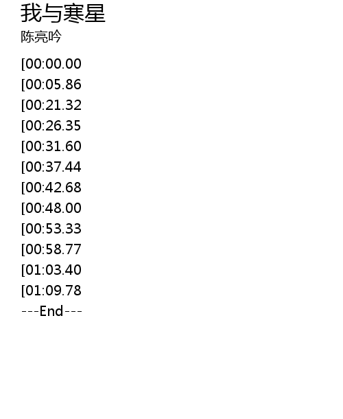 | [01:35.42][00:21.32] | 寒星一颗颗寒星 |