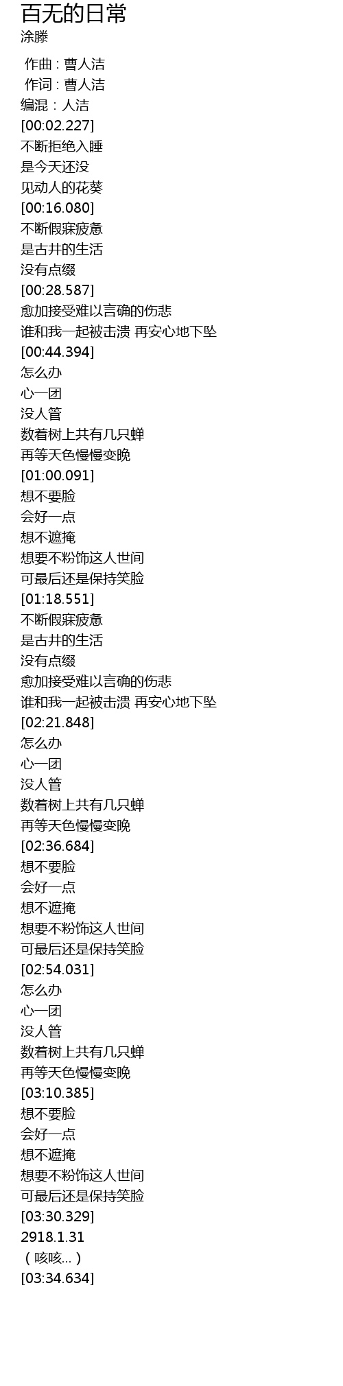 | [00:00.000] | 作曲 : 曹人洁 |
