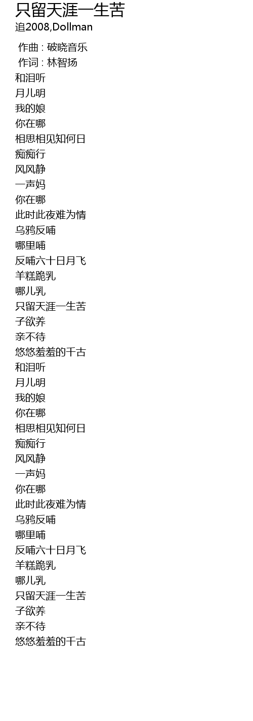 | [00:49.540] | zhǐ liú tiān yá yī shēng kǔ |