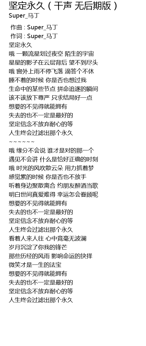| [00:00.000] | zuo qu : Super_ ma ding |