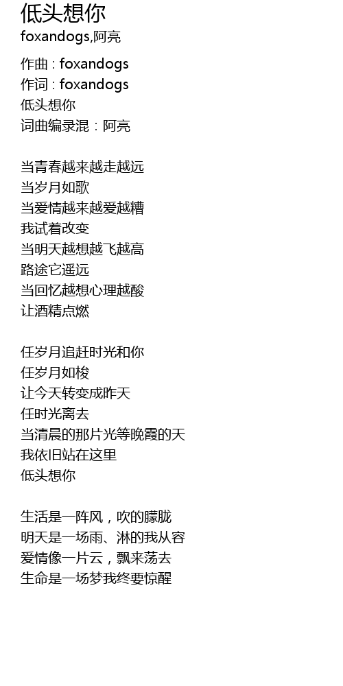 | 作词 : foxandogs | |