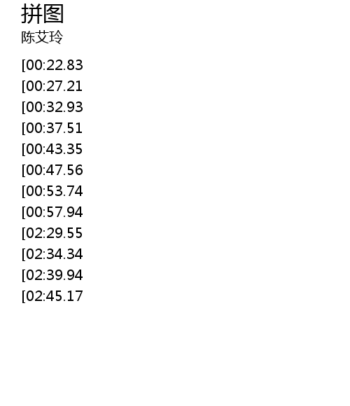 | [03:03.20][02:39.94][01:14.17] | 你曾经拼凑我的生命 |