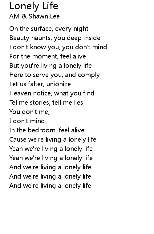 Yeah we're living a lonely life |