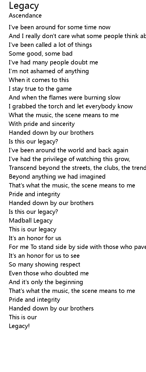 Legacy Lyrics