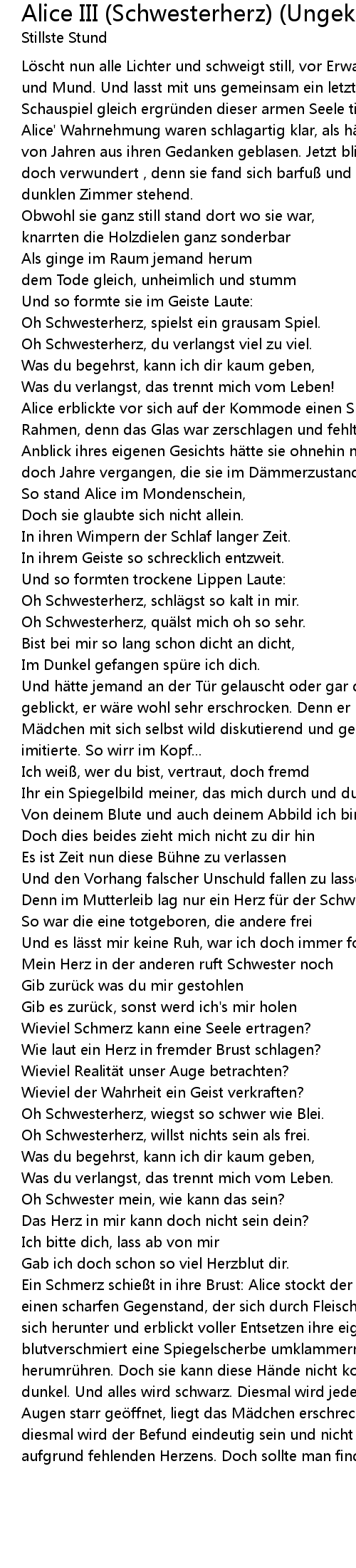 | Song | Alice III (Schwesterherz) (Ungekürzte Version) |