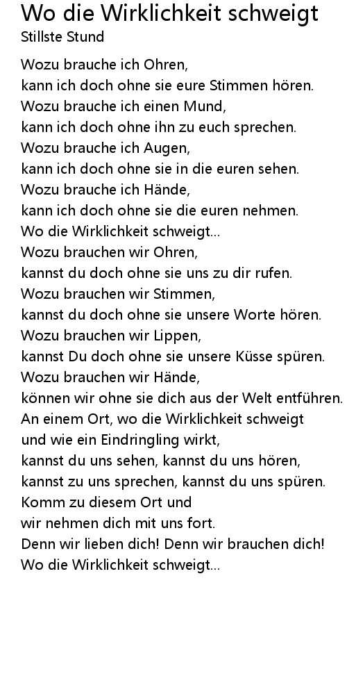 | Song | Wo die Wirklichkeit schweigt |