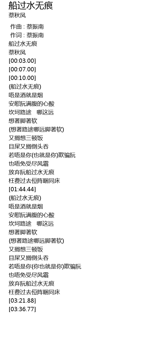 | [03:05.99] | fang qi ruan chuan guo shui wu hen |