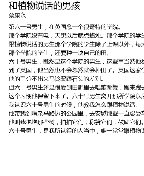 | 六十号男生,是我所认得的人当中,唯一常常跟植物说话的男生。 |