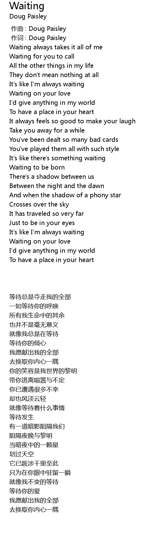 | [00:17.408] | Waiting always takes it all of me |
