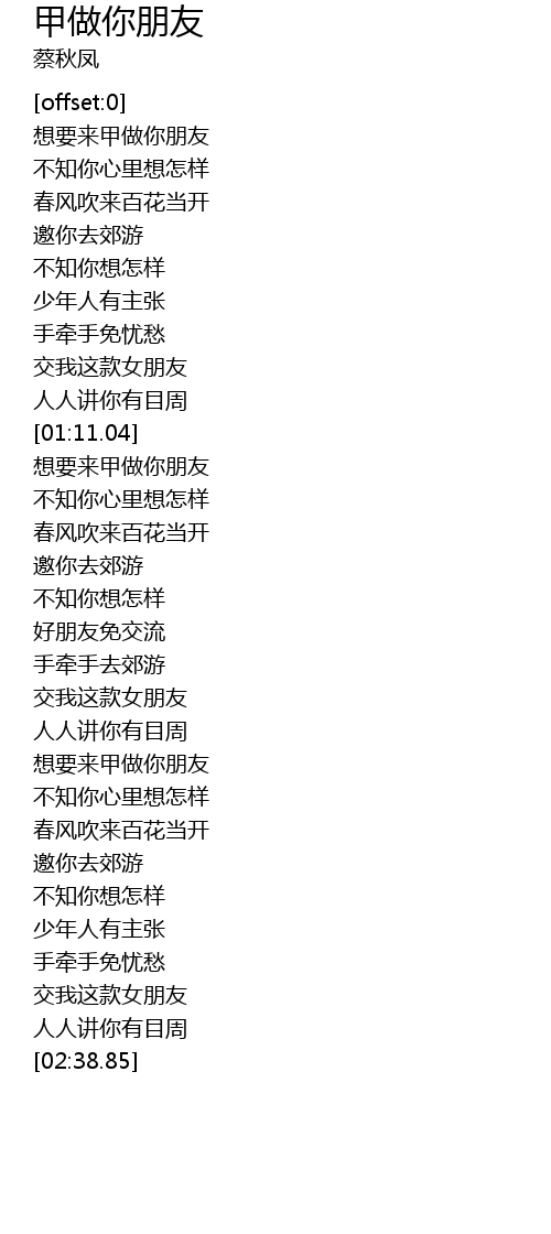 | [01:38.00] | jiao wo zhe kuan nv peng you |