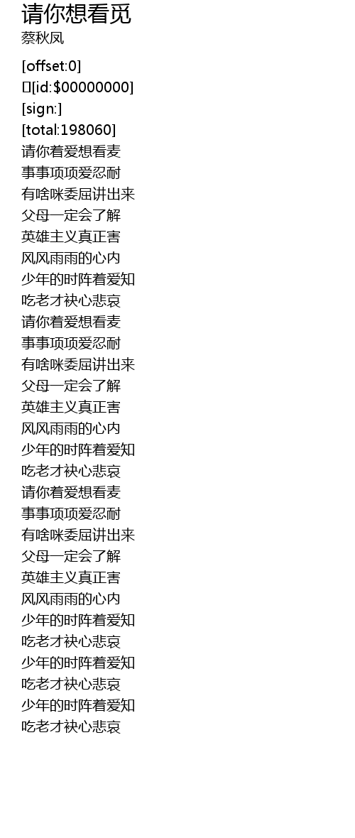 | [01:06.675] | qing ni zhe ai xiang kan mai |