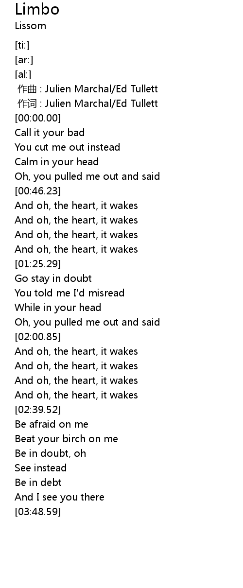 | [00:00.000] | zuo qu : Julien Marchal Ed Tullett |