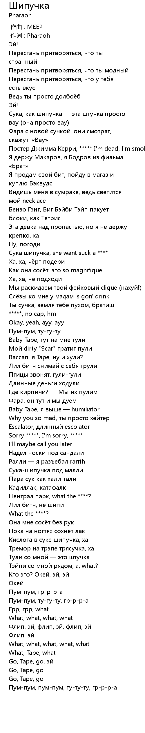 | [00:49.29] | Сука шипучка, she want suck a **** |