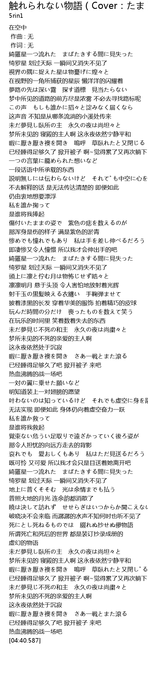| [03:59.044] | 梦所未见的 寝殿的主人啊 这永夜依然宁静平和 |