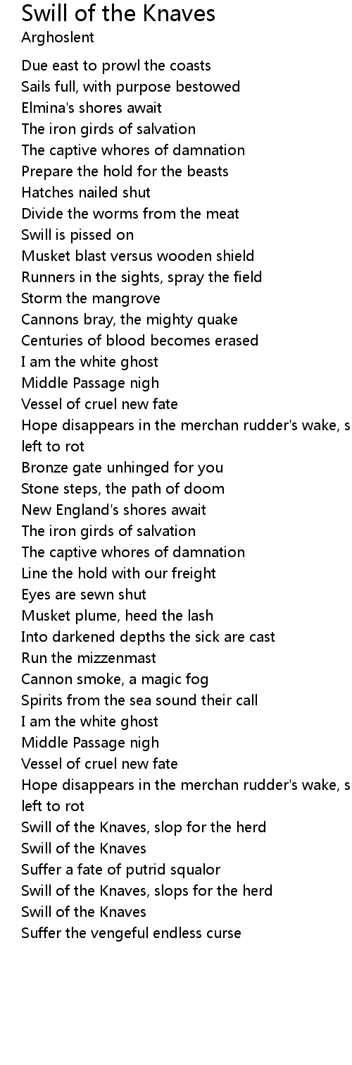 Hope disappears in the merchan rudder's wake, sleep with the dead, cargo stowed, left to rot |