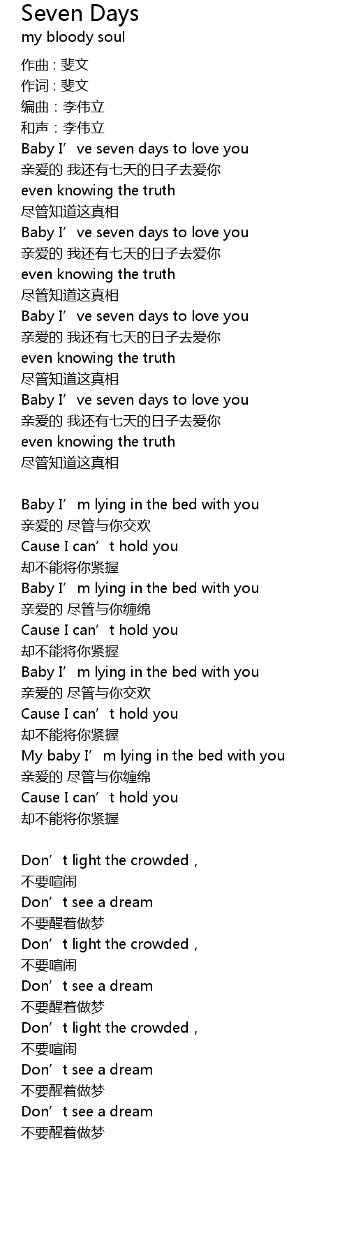 | qīn ài de wǒ hái yǒu qī tiān de rì zi qù ài nǐ | |