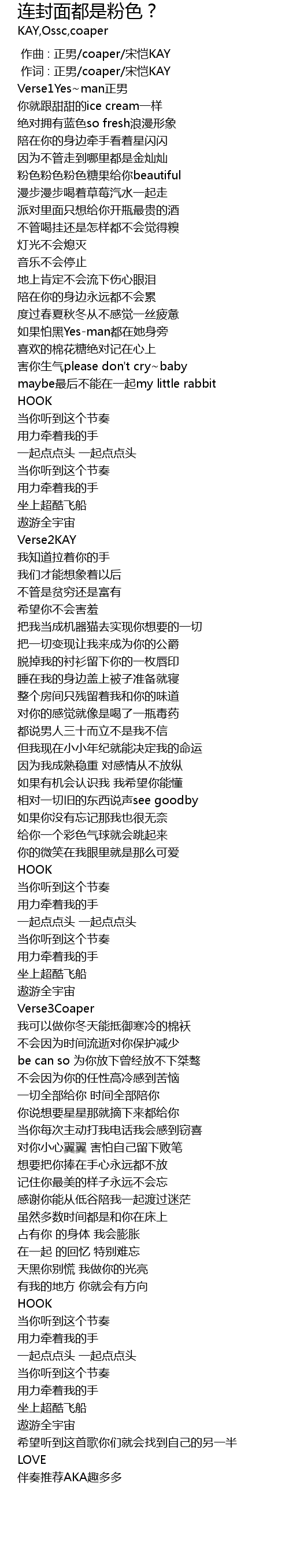 | [00:01.000] | 作词 : 正男/coaper/宋恺KAY |