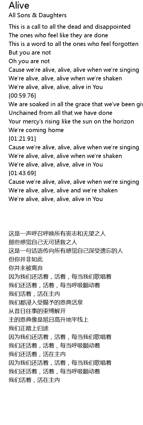 Cause we're alive, alive, alive when we're singing |