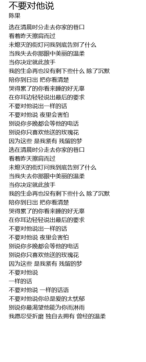 | [03:24.800] | bú yào duì tā shuō chū yí yàng de huà |