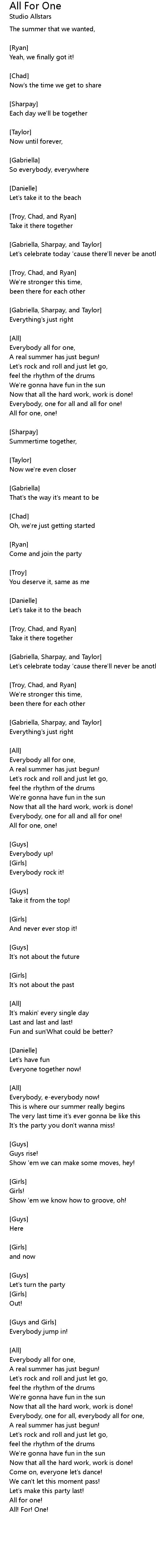 Everybody, one for all, everybody all for one, |