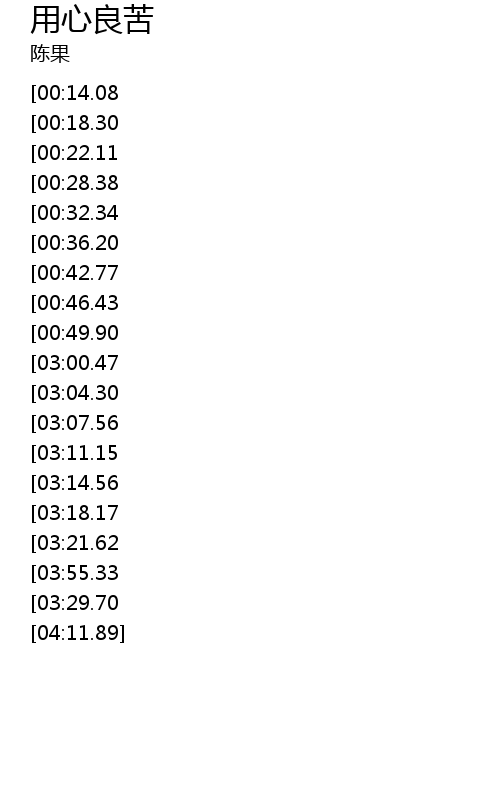 | [03:47.91][03:18.17][02:33.66][01:14.17] | 用心良苦却成空 |