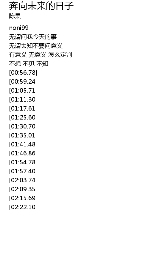 | [04:44.75][02:22.10] | 不会知 |