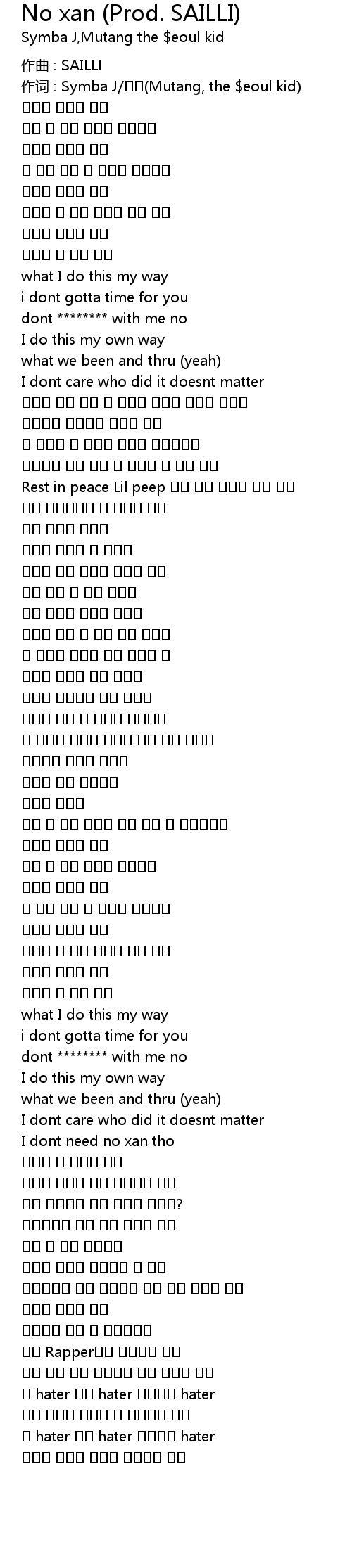 作词 : Symba J/무탱(Mutang, the $eoul kid) |