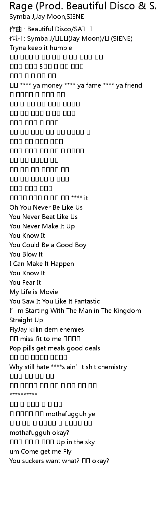 | 그냥 **** ya money **** ya fame **** ya friend | |