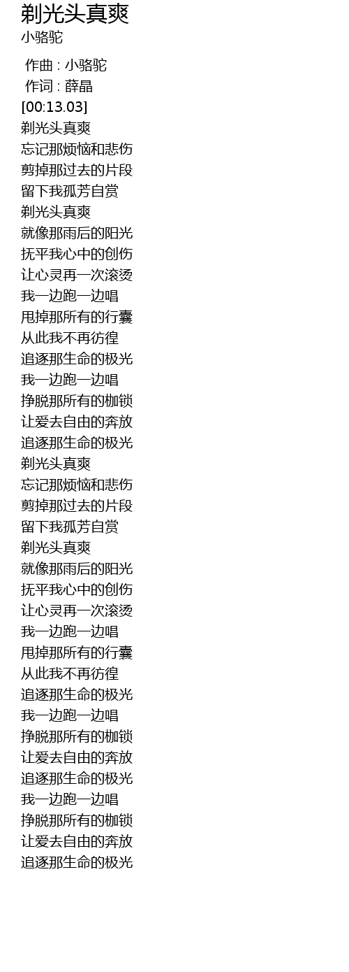 | [00:25.27] | tì guāng tóu zhēn shuǎng |