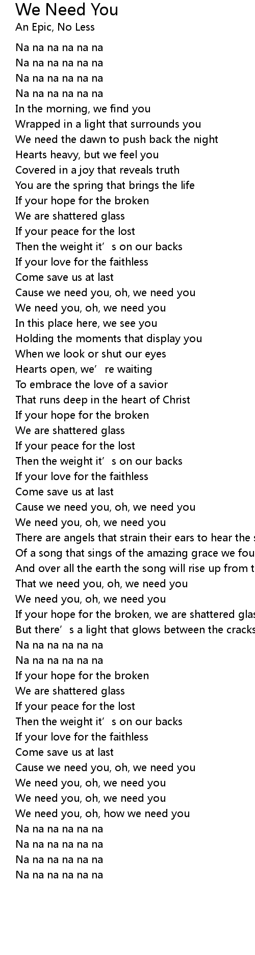 | [02:44.38] | If your hope for the broken, we are shattered glass |
