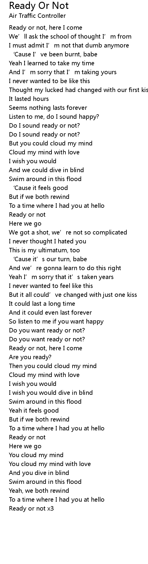 | Song | Ready Or Not |