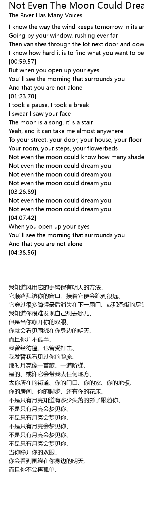 [03:47.93] Not even the moon could dream you