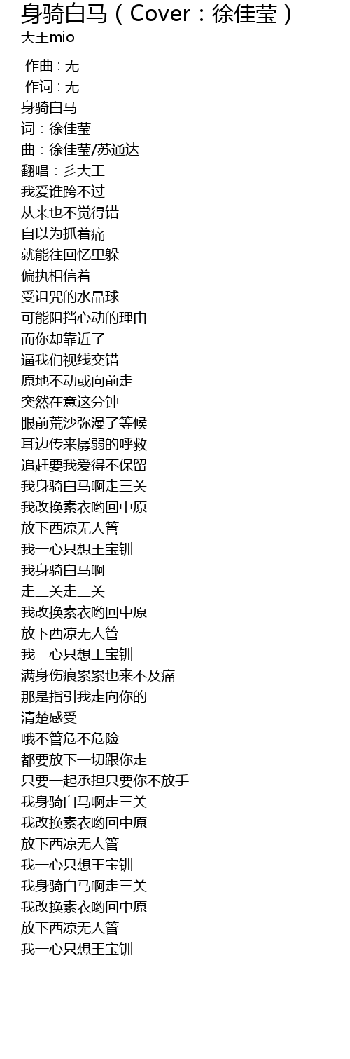 | [00:04.124] | 身骑白马 |