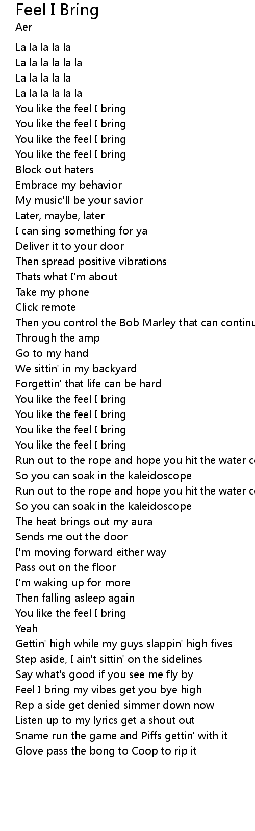 | [02:15.40] | Feel I bring my vibes get you bye high |
